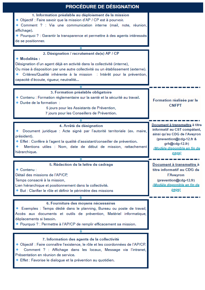 | Besoin d'informations ou de conseils sur les Assistants de prévention ? Le service prévention du CDG est à votre écoute et vous accompagne : prevention@cdg-12.fr |